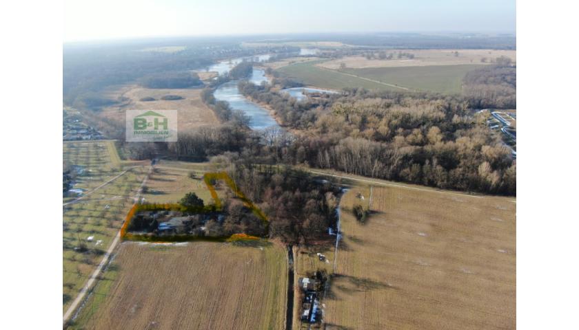 Die Immobilie befindet sich in Dessau-Ziebigk, einer der begehrtesten Wohnlagen der Stadt. Die Luftbilder verdeutlichen die einmalige Einzellage des Grundstücks: unmittelbare Nähe zum Elbwanderweg, umgeben von Natur, altem Baumbestand, Spazierwegen und ohne direkte Nachbarschaft.